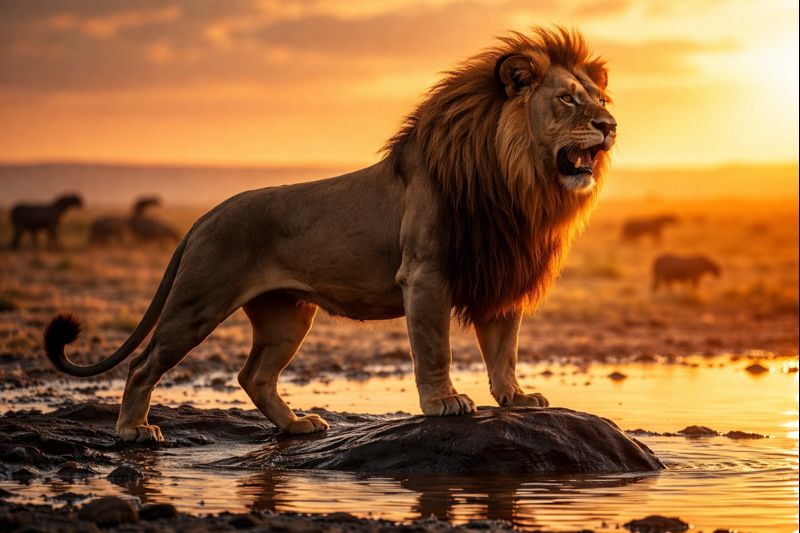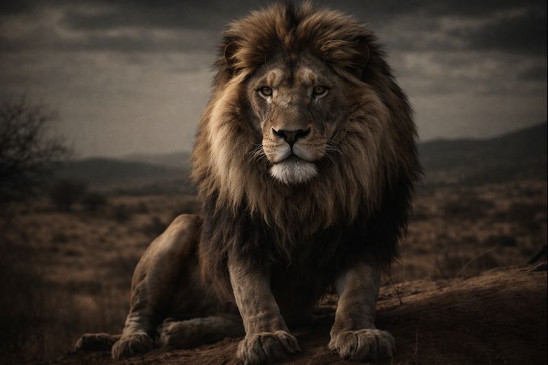 Ein Löwenmännchen ist Aura. Es ist Präsenz. Es ist Schutz. Es steht zwischen Gefahr und Familie ohne Diskussion. Er würde nicht zögern für seine Familie. Er zieht klare Grenzlinien. Nicht aus Hass sondern aus Verantwortung. Seine bloße Existenz entscheidet ob Nähe erlaubt ist oder nicht. Verliert ein Löwe diese Linie wird sein Rudel Beute.